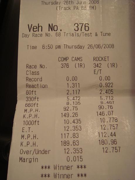 PROVEN 12.20@117.58mph on STREET! 0-100kph in 4.21 seconds!Rice Racing Story - As Told by Customer"My car has been previously tuned a few times by a well known work shop in Brisbane. I was very happy with the tune it as it ran 12.8 @ 114 mph down the quarter. I gave Pete the chance to tune my car and the result was 12.1 @ 117.8mph! Enough said. I was very impressed with the equipment he uses, the data out put of the VBox is amazing. Gives you data on all aspect of the car and is great to compare back to back runs of you car or other vehicle's. Its quite comprehensive and has made me realize how dynos are inferior in many ways. The attention to detail Pete gives you really reassures you. Its not only his tune that differs from other workshop, it is his willingness to give advice on any meaningful question and help anytime of the week that that sets everything apart." Pictures of Customer Car![]() |